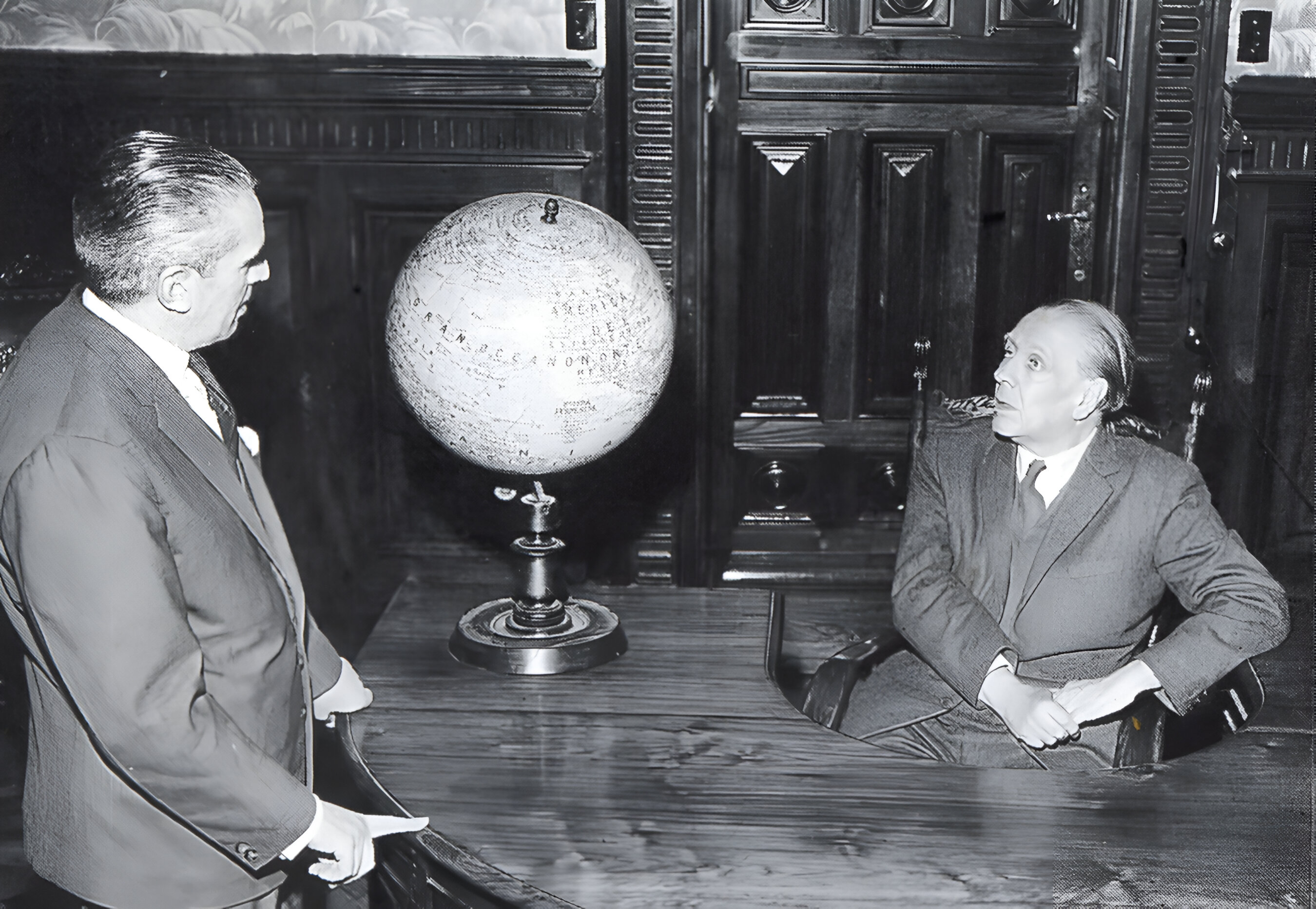 José Edmundo Clemente y Jorge Luis Borges en el despacho de la Biblioteca Nacional