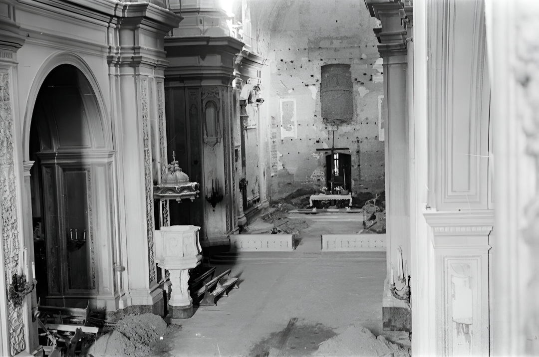 Interior de la Iglesia de Santo Domingo tras el incendio que destruyó por completo el altar mayor