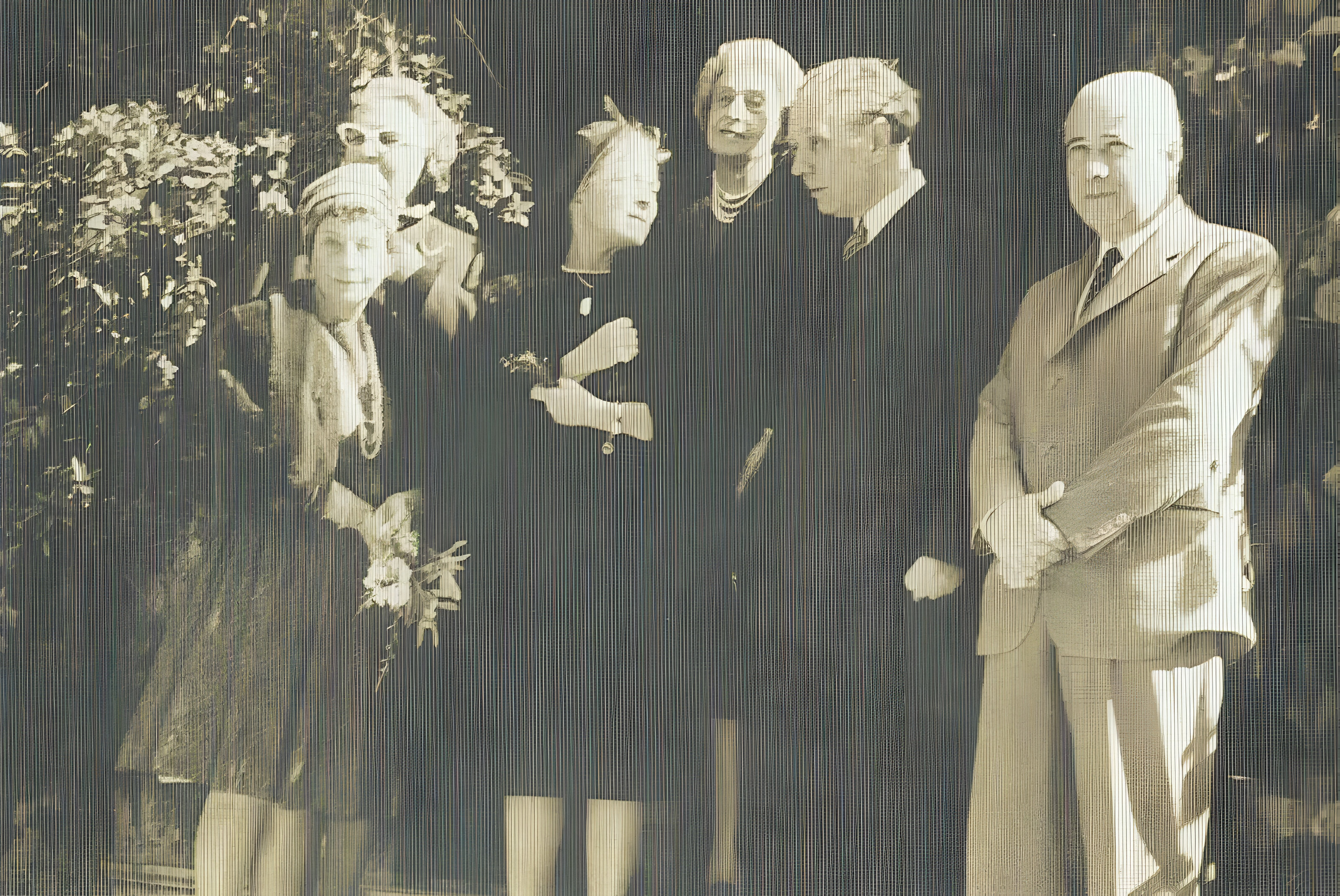 De izq. a der.: señora de X, Victoria Ocampo, Helen Hayes, Angélica Ocampo, Jorge Luis Borges y Eduardo Mallea - Borges Todo el Año