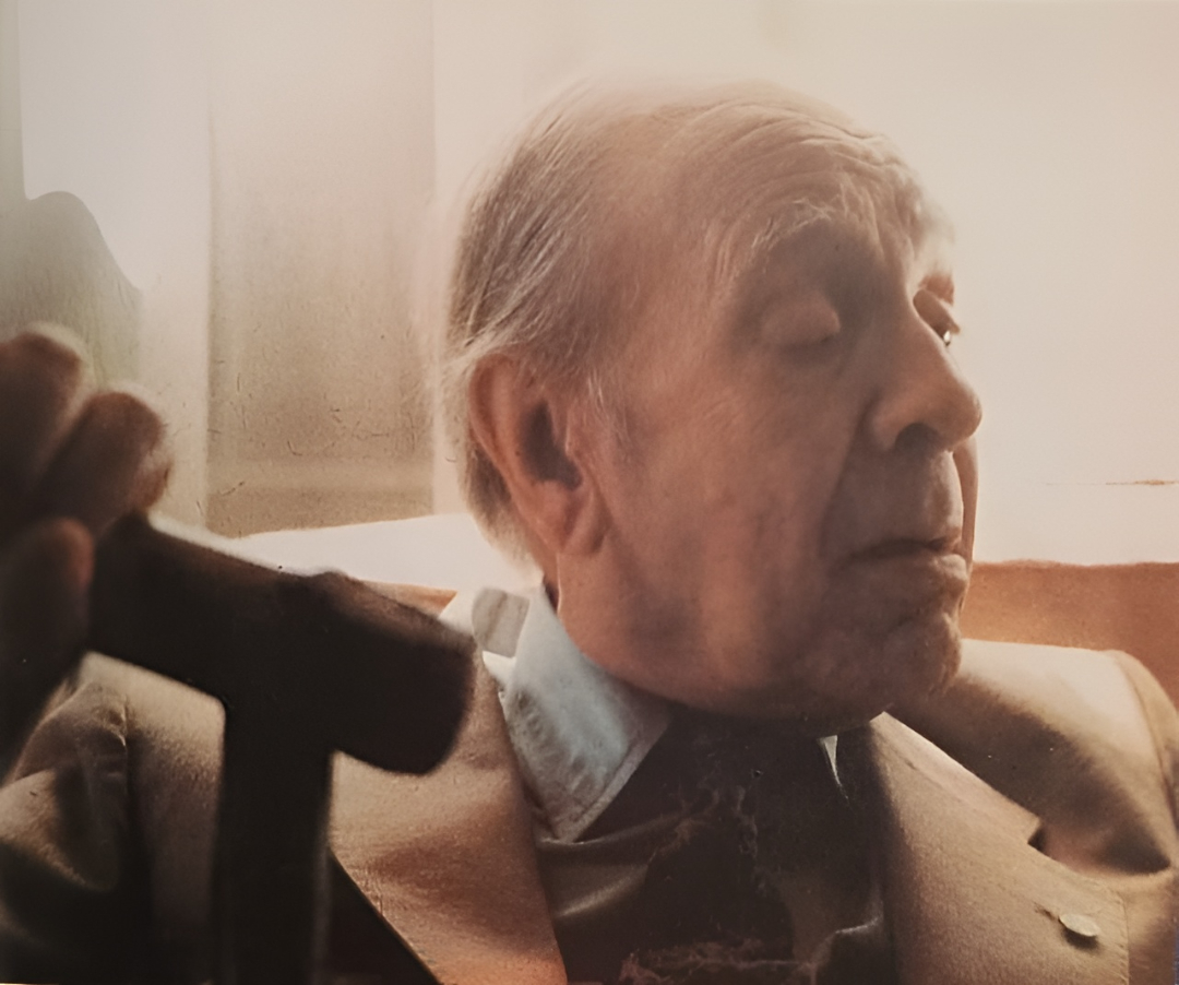 Borges apoyado en su bastón - Luis Suvervil.