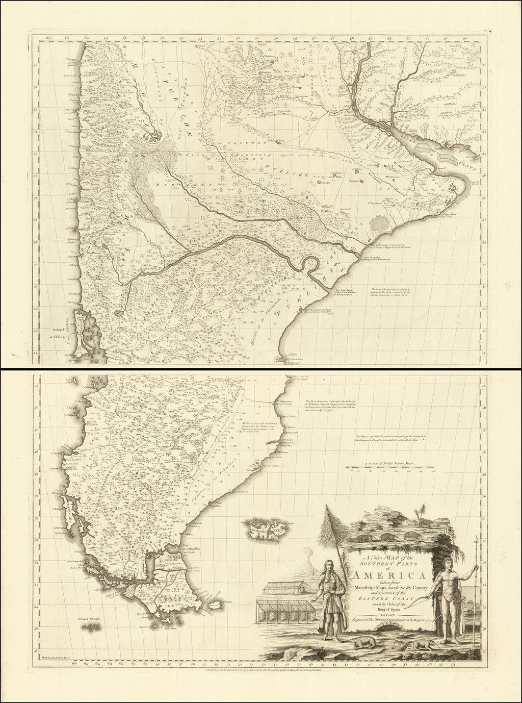 Incluye dos mapas de 48 × 73 cm que, unidos, componen un gran mapa grabado por Thomas Kitchin.